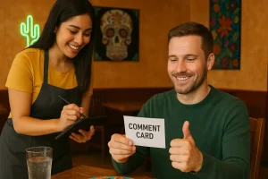 - Encourage happy customers to leave reviews (through table cards or digital receipts)